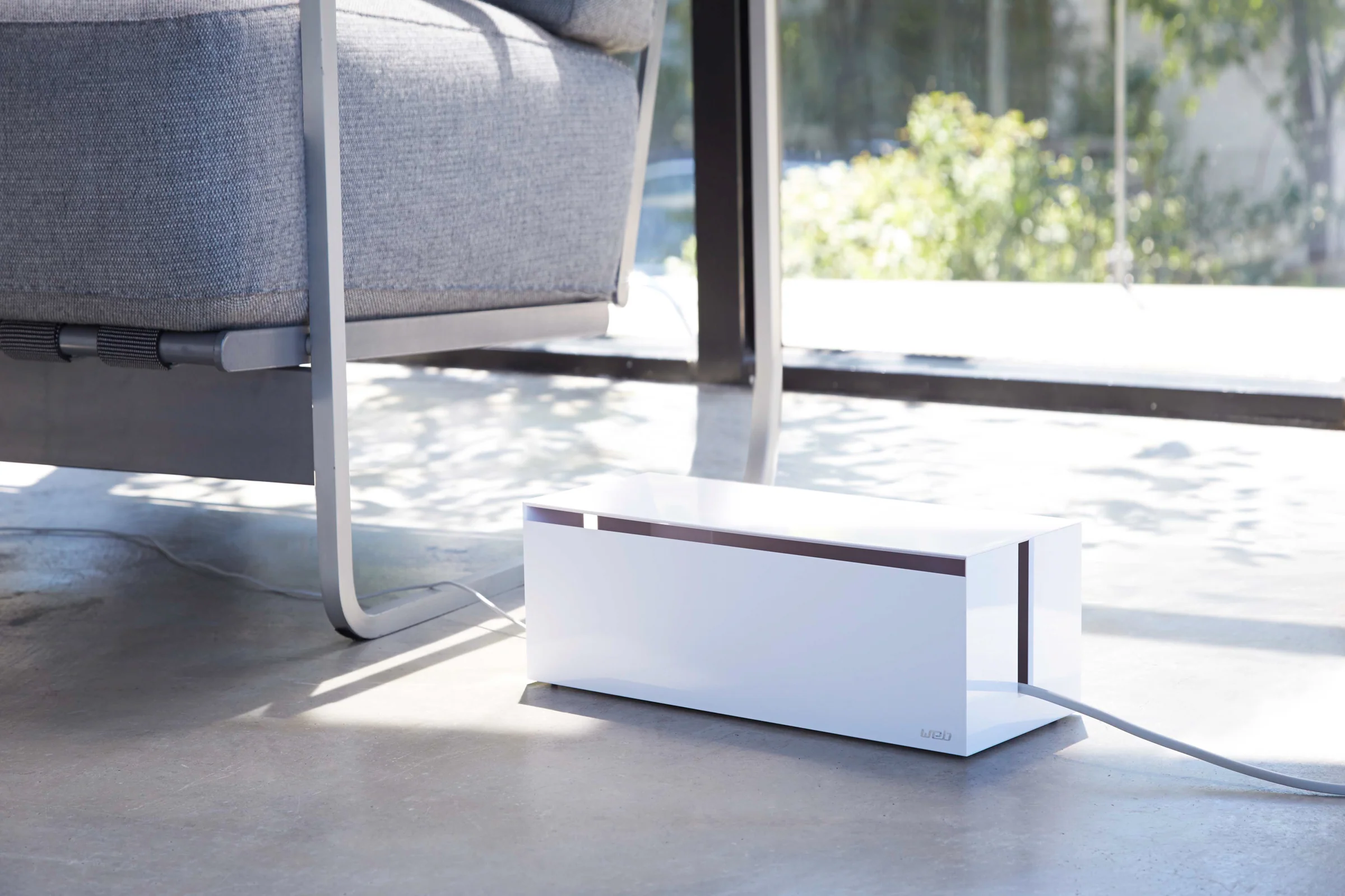 You've got to break free. Break free from a thicket of tangled cords and keep your desktop and floor nice and tidy. This sleek resin box holds countless cords and a power strip with up to seven outlets, keeping electronics safe, dust-free, and out of sight. A simple trick that eliminates the risk of tripping, keeps your robot vacuum running smoothly without getting stuck, and protects your furry friends from playing with a tangle of wires.